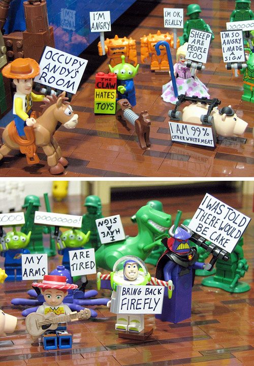 Occupy Wall Street has reached a new level with Occupy Andy’s room. The Toy Story gang is in the protest now and what is next? Disneyland? Mickey? Minnie?