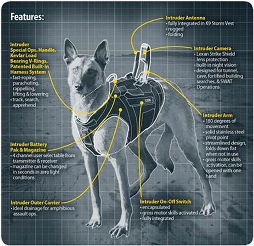 And then there are the special hi-tech add-ons that made the K9 Storm especially appealing to the U.S. Navy SEALs, who bought four of K9 Storm Inc.’s top-end Intruder “canine tactical assault suits” last year for $86,000. You can be sure Cairo was wearing one of those four suits when he jumped into bin Laden’s lair.