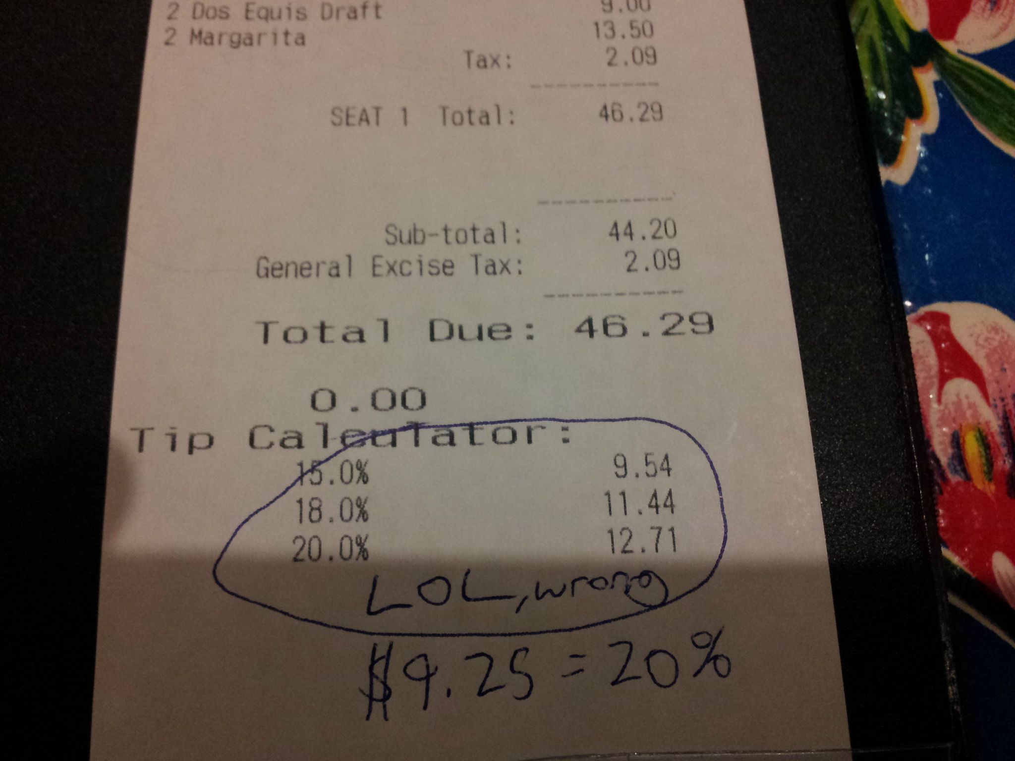 This restaurant tries to help you out with the suggested tip amount for your meal on the receipt. Too bad, isn’t correct…